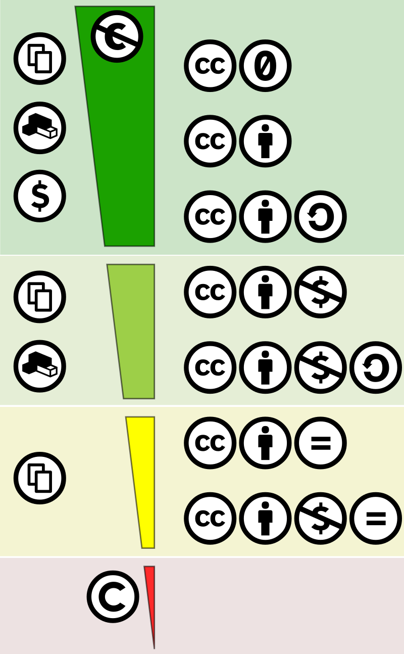 Creative commons license spectrum by Shaddim; original CC license symbols by Creative Commons. CCBYSA 4.0